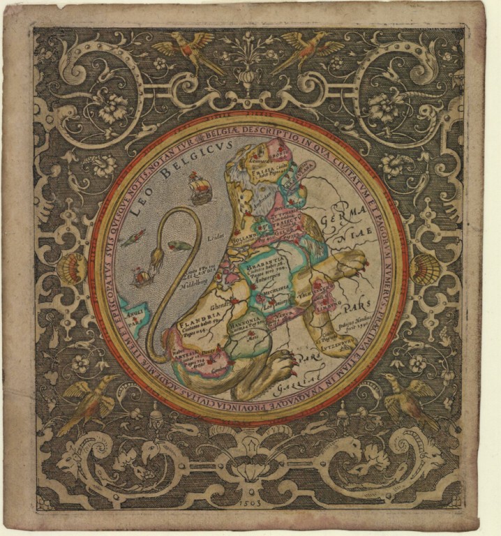 The "Leo Belgicus" is one of the most famous of all cartographic curiosities. The format depicts the 17 Provinces of the Low Countries in the form of a lion. The first Leo was produced by the Austrian Michael von Aitzing who, in 1583, included an example in his work ‘De Leone Belgico’ that detailed the Netherlands' war of Independence against Hapsburg rule.