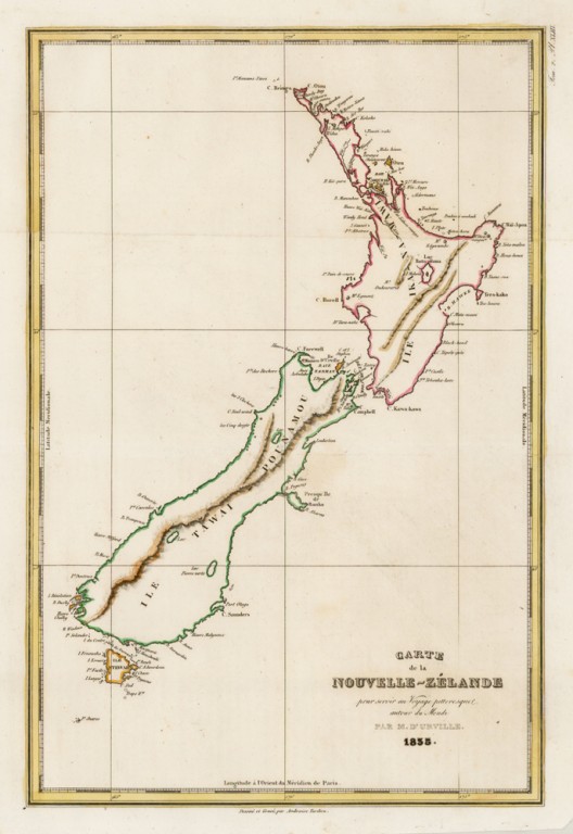 Dumont D'Urville made his own voyage around the world in the ‘Astrolabe’, 1826–1829, 1830–1834. It was an important voyage, and one in a great series undertaken by the French government in the late eighteenth and early nineteenth centuries for scientific and political purposes. Led by Jules Dumont d'Urville, its intention "was to gain additional information about the principal groups of islands in the Pacific and to augment the mass of scientific data acquired by Louis Duperrey. The Astrolabe sailed south, around the Cape of Good Hope, and arrived at Port Jackson. Proceeding to New Zealand, its coast, especially the southern part of Cook Strait, was surveyed with great care. Tonga and parts of the Fiji Archipeligo were explored, then New Britain, New Guinea, Amboina, Tasmania, Vanikoro, Guam and Java. The return home was by way of Mauritius and the Cape of Good Hope. Huge amounts of scientific materials were collected and published" (Hill).