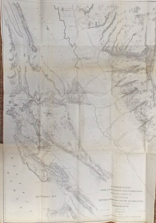 Published in Wilkes' 'Western America, Including California and Oregon, with Maps of Those Regions, and of 'The Sacramento Valley', Philadelphia: Lea and Blanchard, 1849, and one of three large folding maps included in the volume. “Commander Wilkes compiled this work from data gathered while he was on the Pacific Coast commanding the United States Exploring Expedition from 1838 to 1842. He included a chapter on the gold region drawn from official reports and his knowledge of the area's geology and his own opinion of gold specimens sent east. The preface was dated February 1, 1849. The map of the Sacramento Valley was an important source of information for gold seekers” (Kurutz, The California Gold Rush 679a).